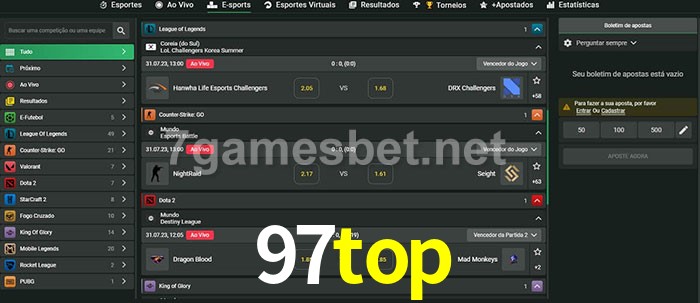 A aposta 97top oferece aos jogadores a experiência mais conveniente de apostas em eSports!
